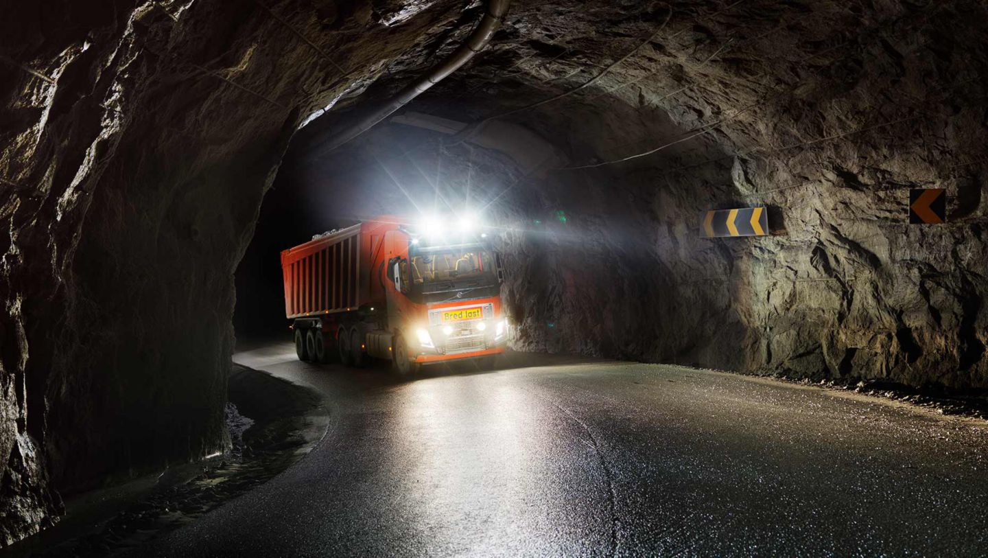 The solution for Brønnøy Kalk AS consists of limestone being transported by six autonomous Volvo FH trucks on a five kilometer stretch through tunnels between the mine itself and the crusher. Tests of this solution have been carried out successfully and will continue throughout 2018 to become fully operational by the end of 2019.